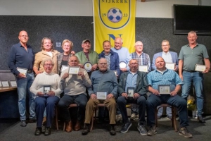 Afgelopen donderdag- en vrijdagavond werden de jubilarissen dan eindelijk gehuldigd. Onze opperstalsprekers Geurt vd Berg en Pim Koelewijn namen het aan elkaar praten en interviewen van de jubilarissen voor hun rekening. De vrijwilligers achter de bar zorgden voor koffie, drankjes en versnaperingen en enkele bestuursleden zorgden ervoor dat de bloemen, oorkondes en speldjes werden uitgereikt. De jubilarissen genoten zichtbaar van de belangstelling. Op vrijdagavond vond postuum de huldiging plaats van 75 jaar lidmaatschap van Cor van Zoeren. Helaas overleed Cor op 4 januari jl. Mevrouw van Zoeren kreeg alsnog de oorkonde uitgereikt. Tevens werd ook Arie Wassink gehuldigd voor 75 jaar lidmaatschap.